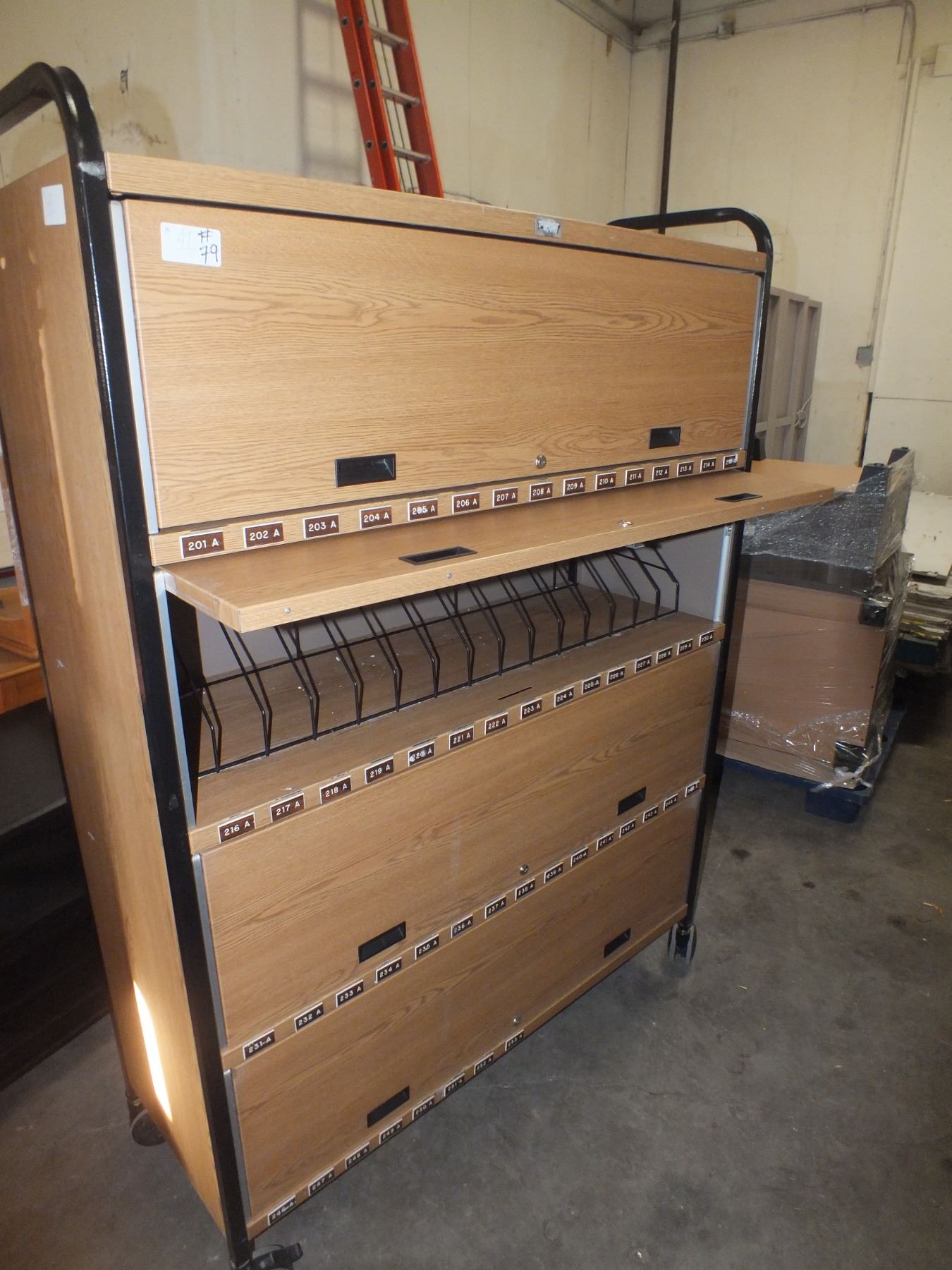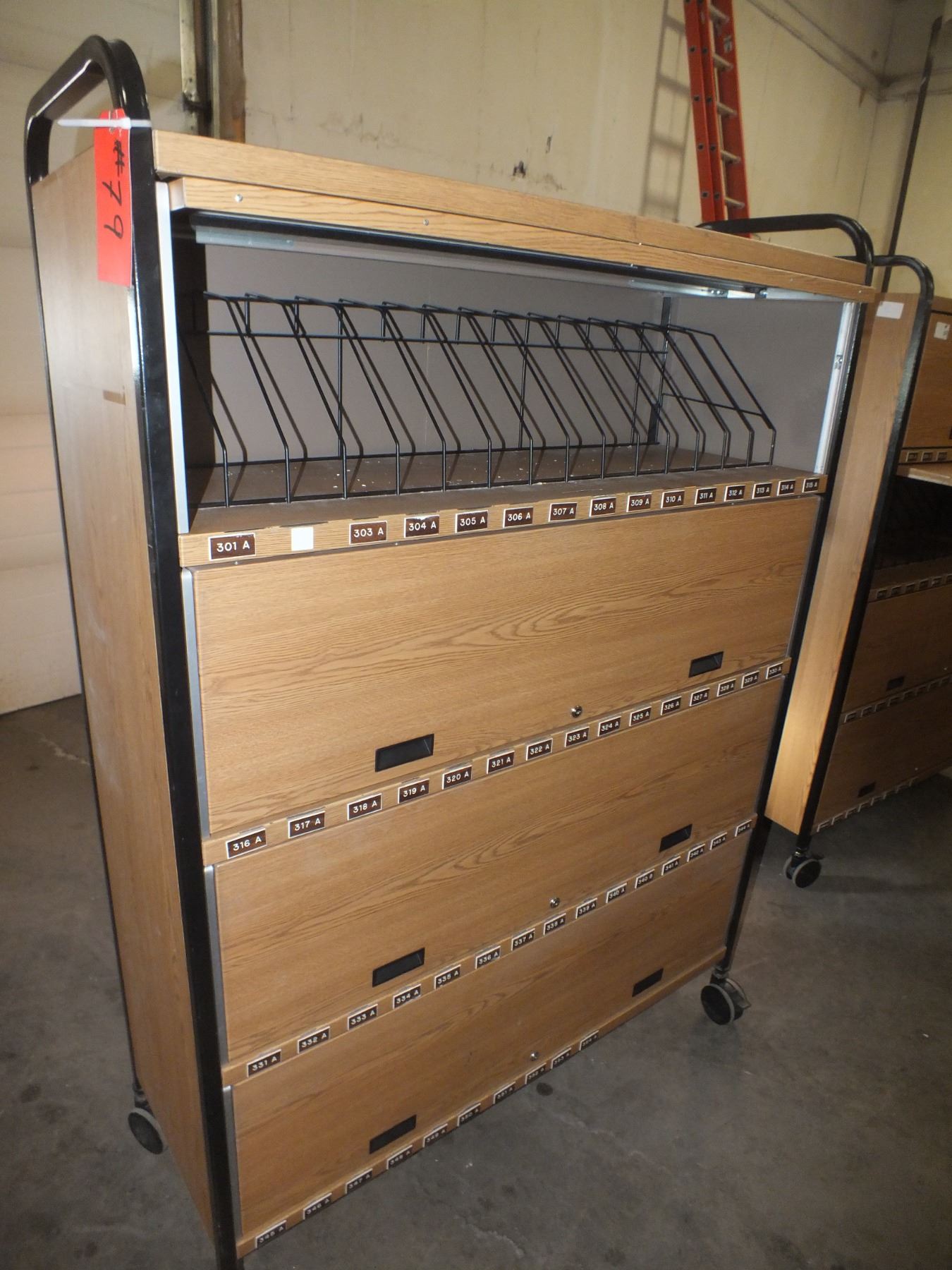 Two 4 Door Metal Storage Carts On wheels, 50"l 18"w 72"h...used