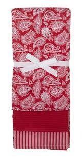 Two Delicious Kitchen Towels, Three Per Set, Red Paisley and Stripes