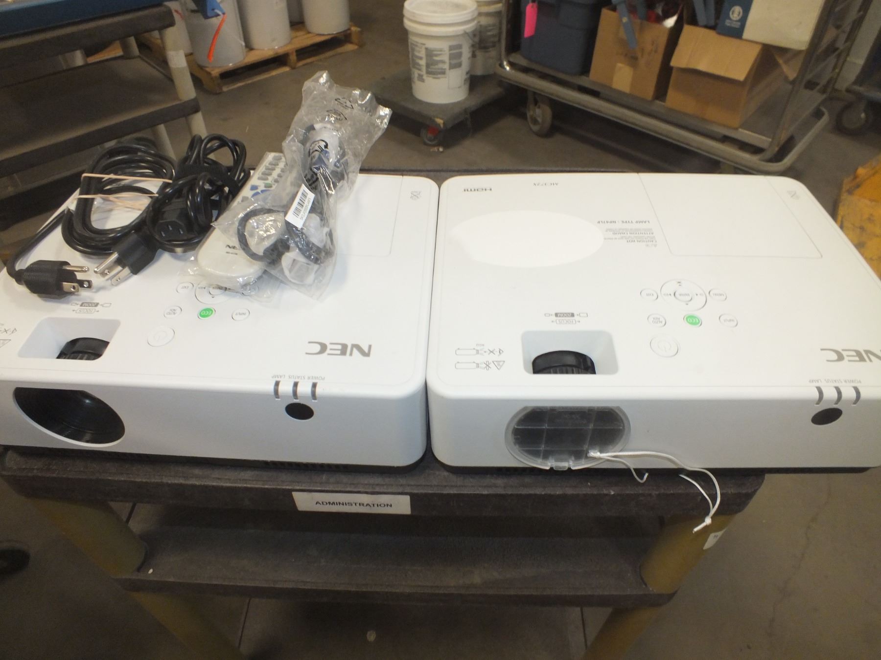 Two Nec MC372X Projectors, comes with 1 remotes, 2 power cords, and 1 computer cord...sold as is / where is...used