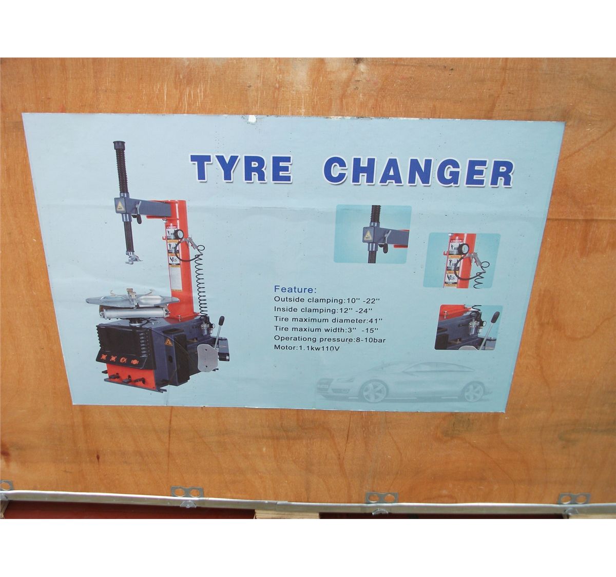 New; outside clamping 10" - 22"; inside clamping 12" - 24"; tire maximum diameter 41"; tire maximum width 3" - 15"; operating pressure 8 - 10 bar; motor 1.1 kw 110 v