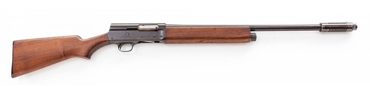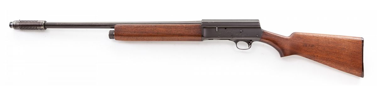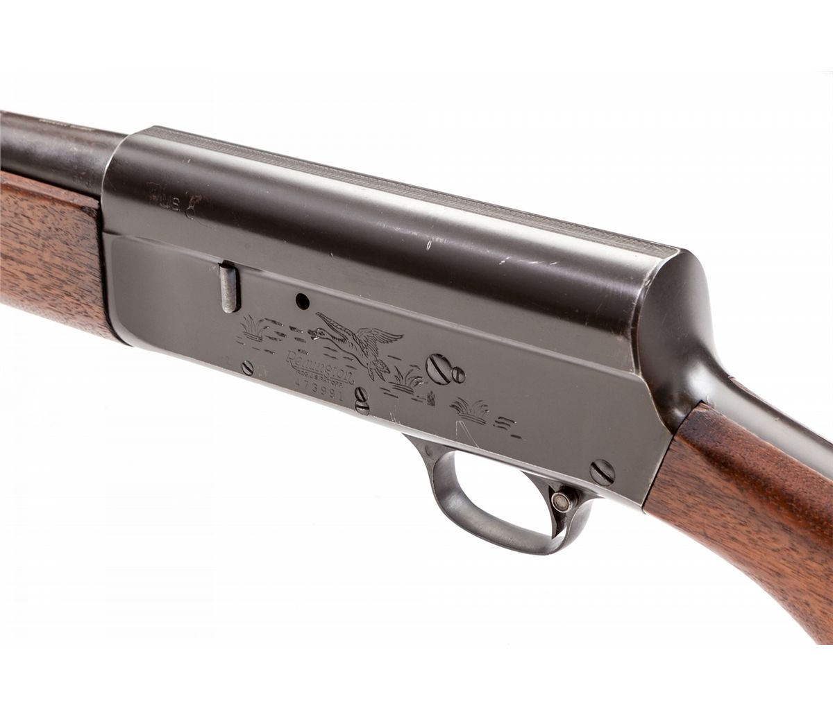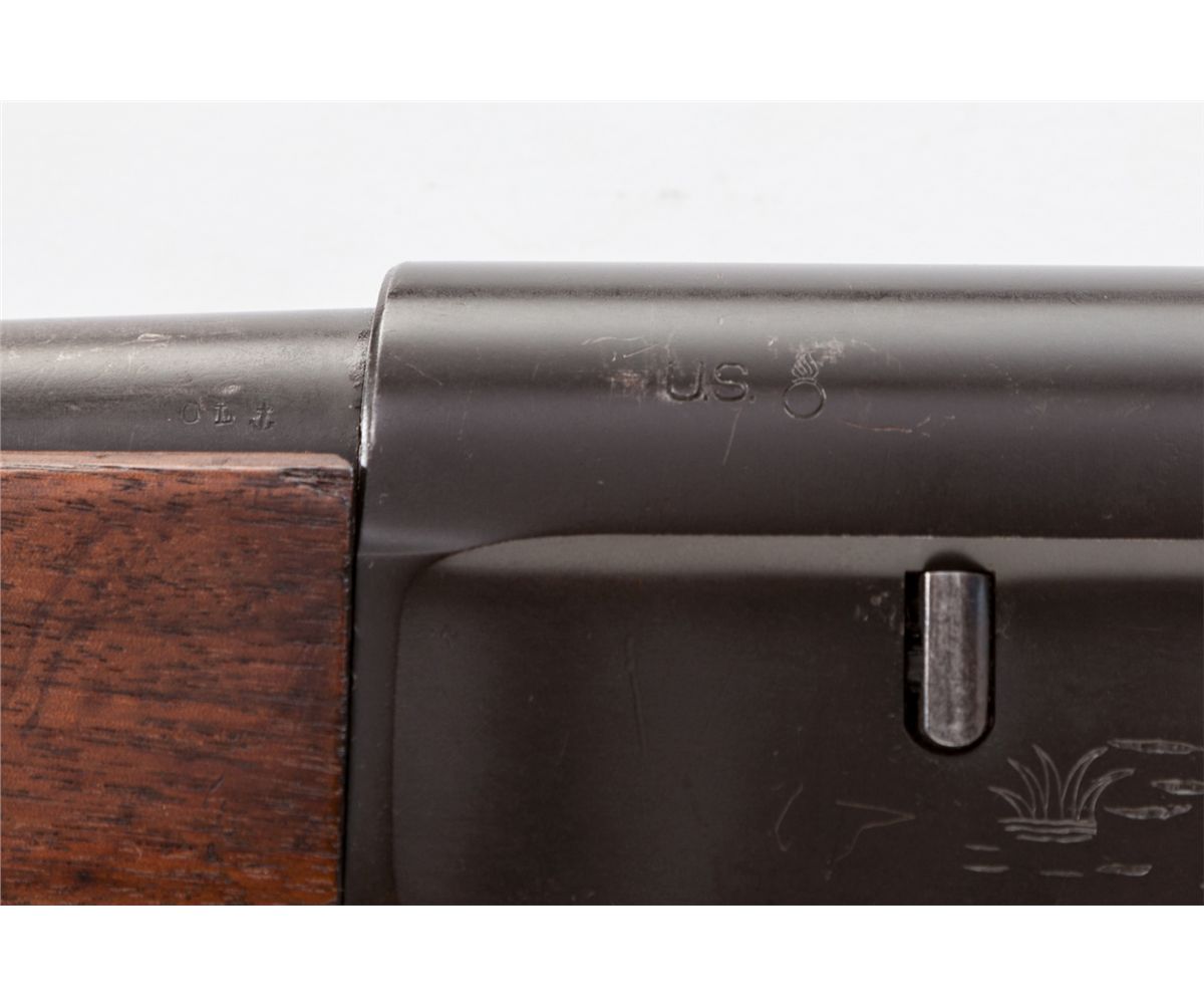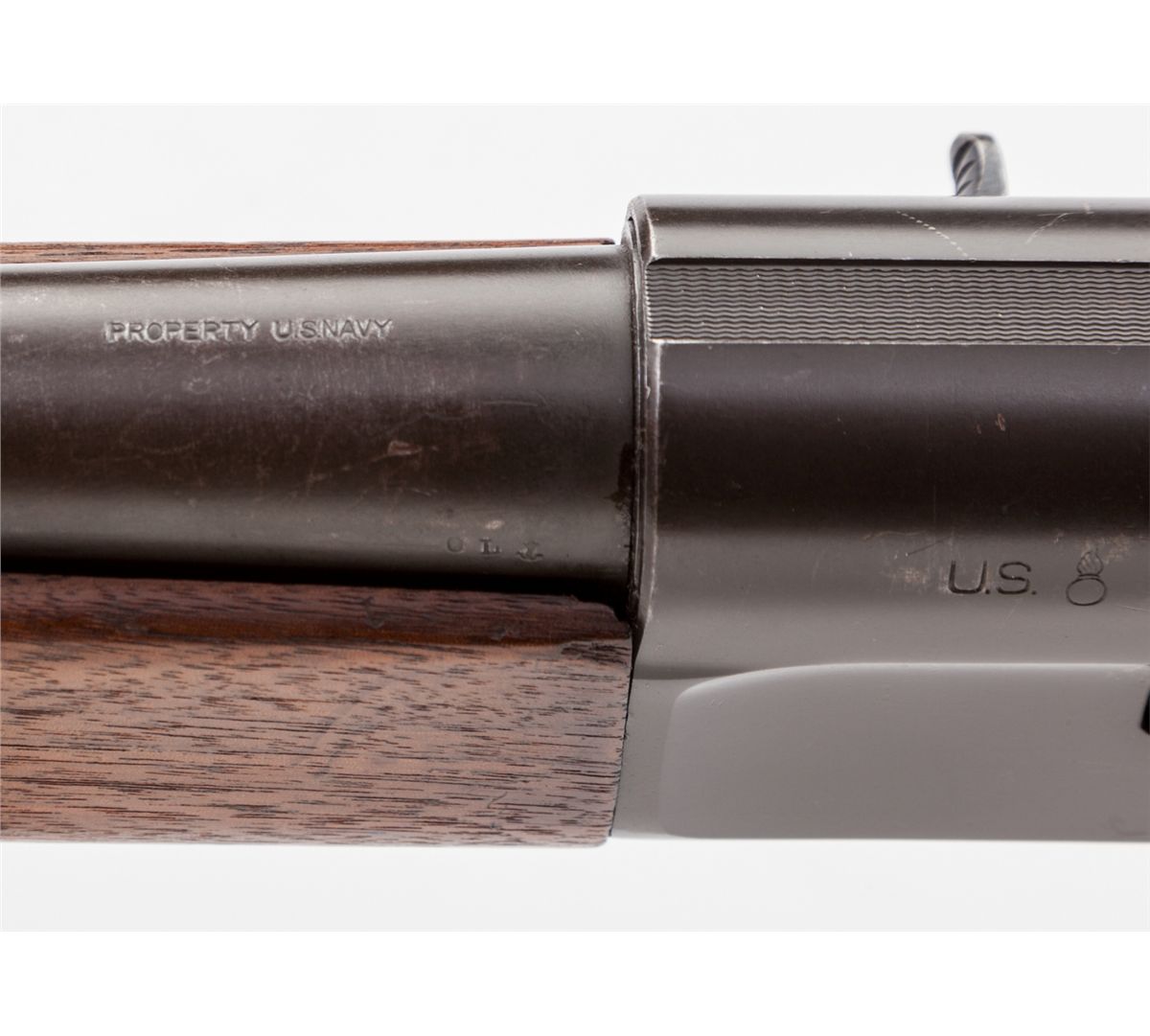 U.S. Navy marked Remington Model 11 Semi-Automatic Shotgun, #473991, 12 ga., 26'' barrel with Cutts compensator, parkerized finish, pistol-grip walnut stock with ''FJA'' cartouche and brown mottled buttplate. Receiver marked ''U.S.'' with flaming bomb; top of barrel marked ''Property U.S. Navy''. Used primarily in the training of aerial gunners. Dating from the early 1940s. Condition is near excellent retaining approx. 95% thinning finish. Stock with light thinning to cartouches. Action is crisp, bore is bright. Est.: $600-$800. (C&R)