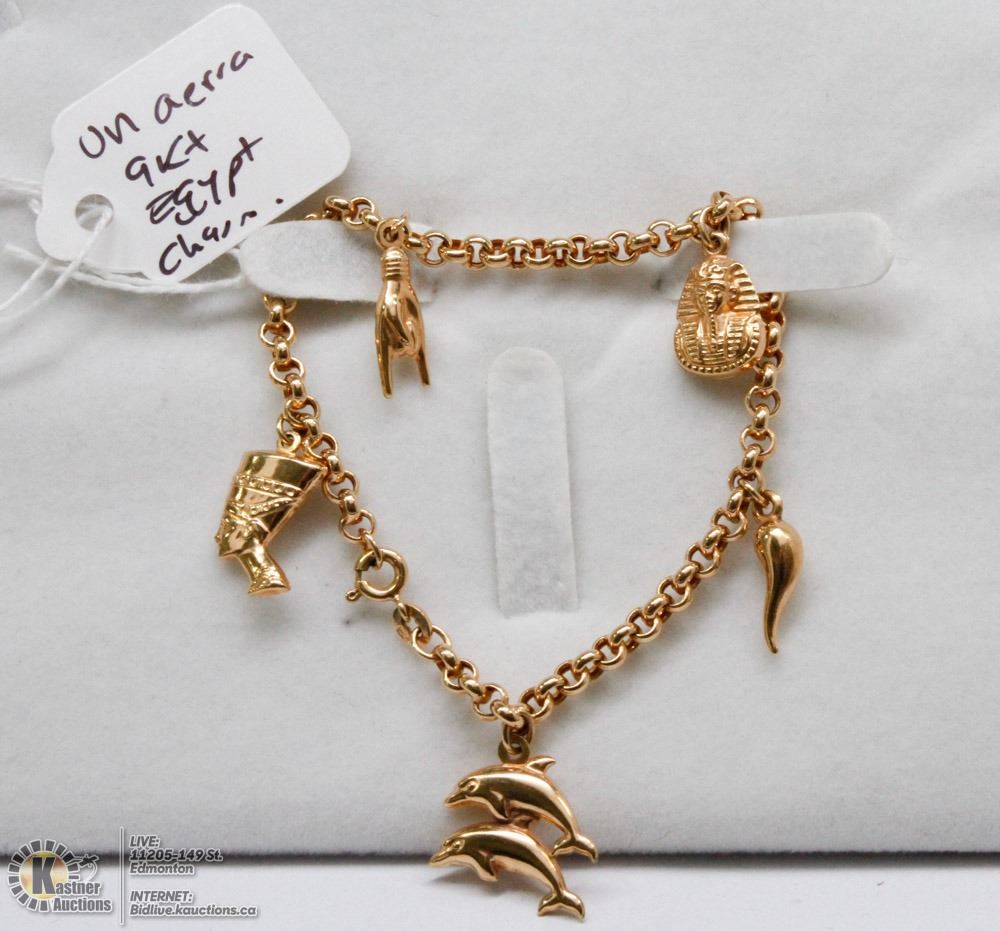 UN AERRA 9KT GOLD EGYPT CHARM BRACELET 7