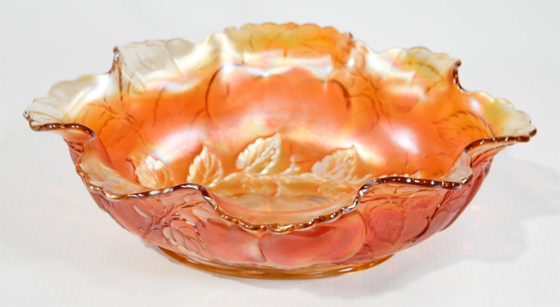 UNIQUE CARNIVAL GLASS LEAF FRUIT DESIGN BOWL