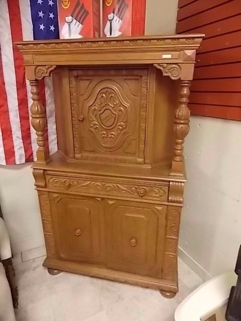 UNIQUE SOLID WOOD CABINET WITH CARVED FRONT - 51" TALL X 38" WIDE