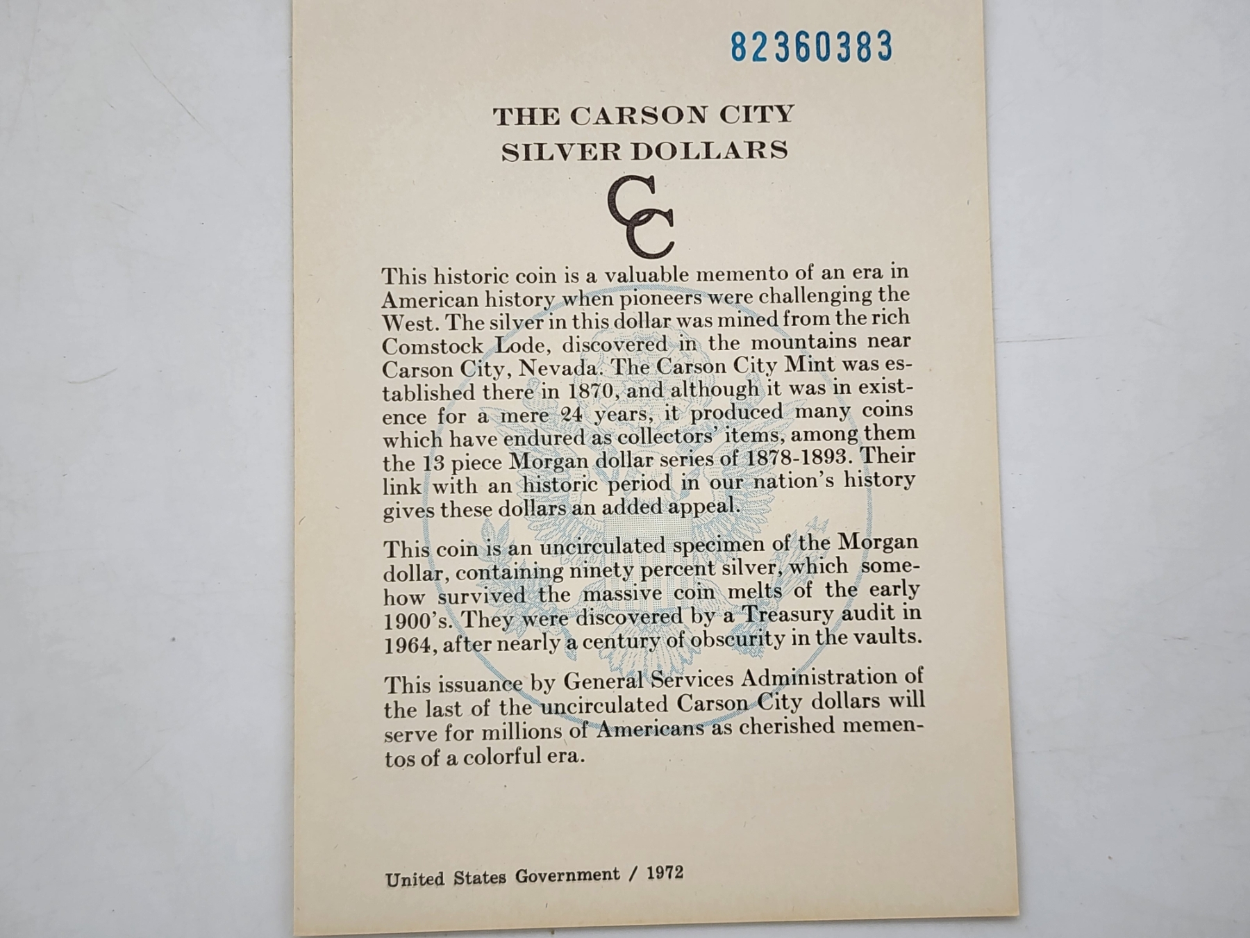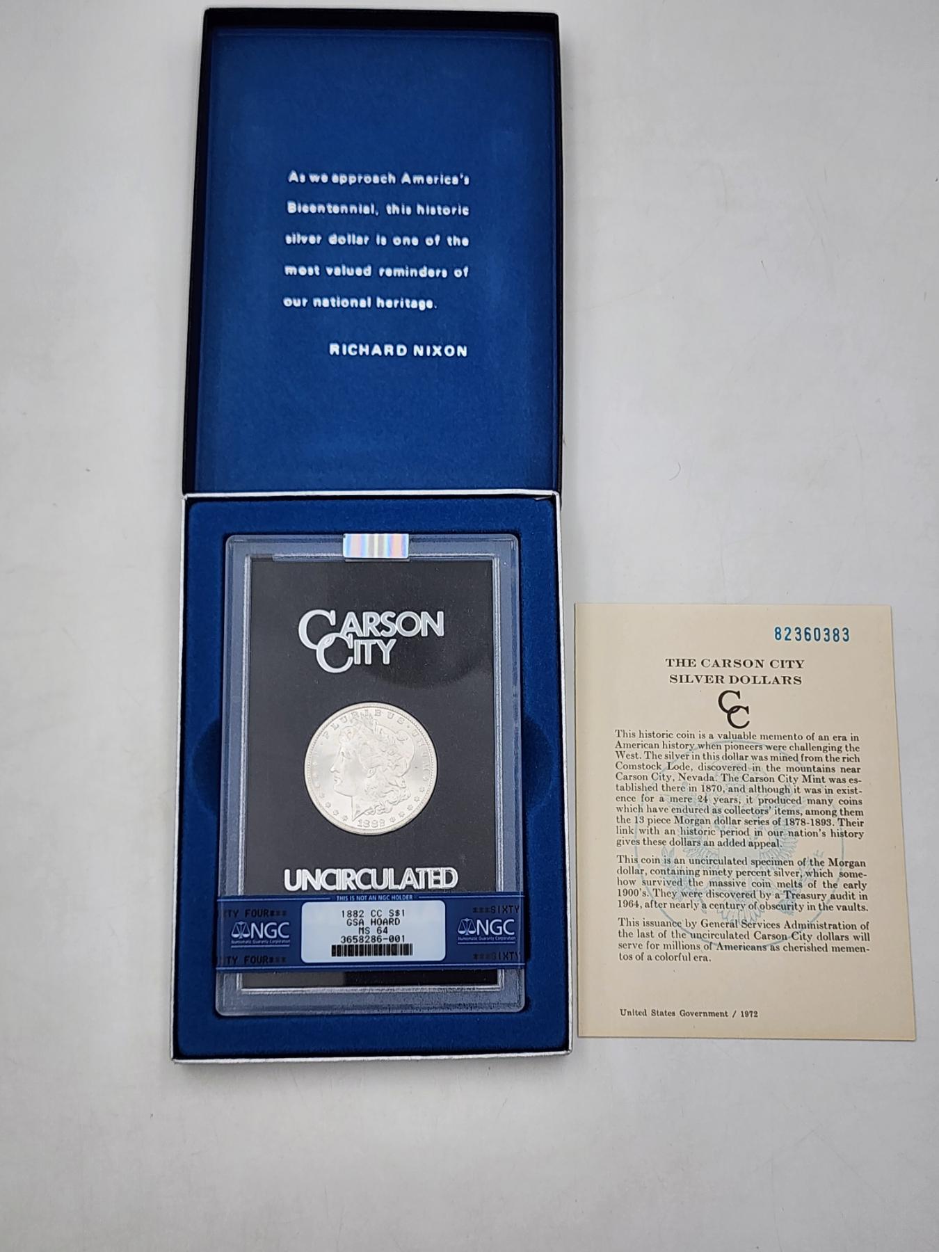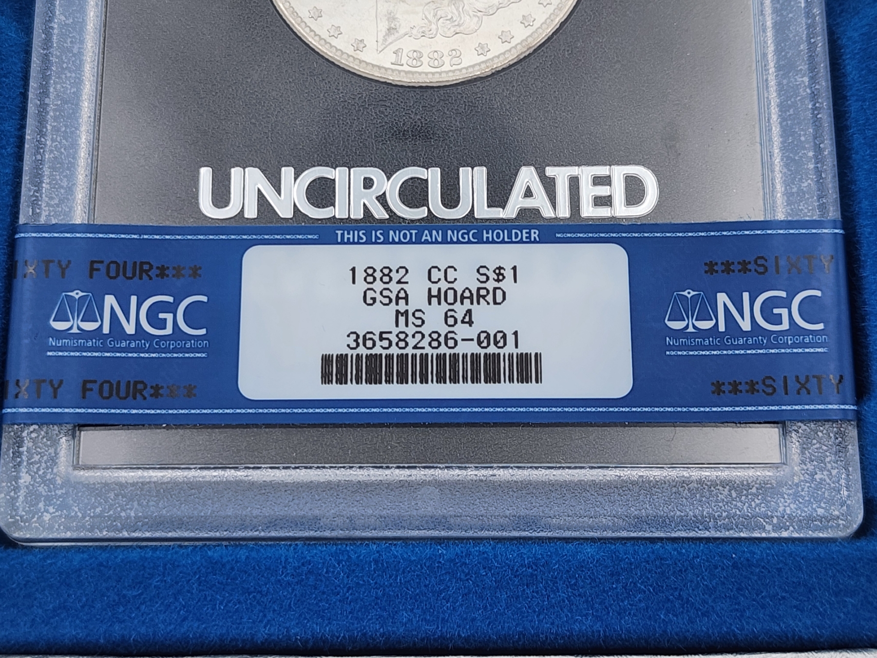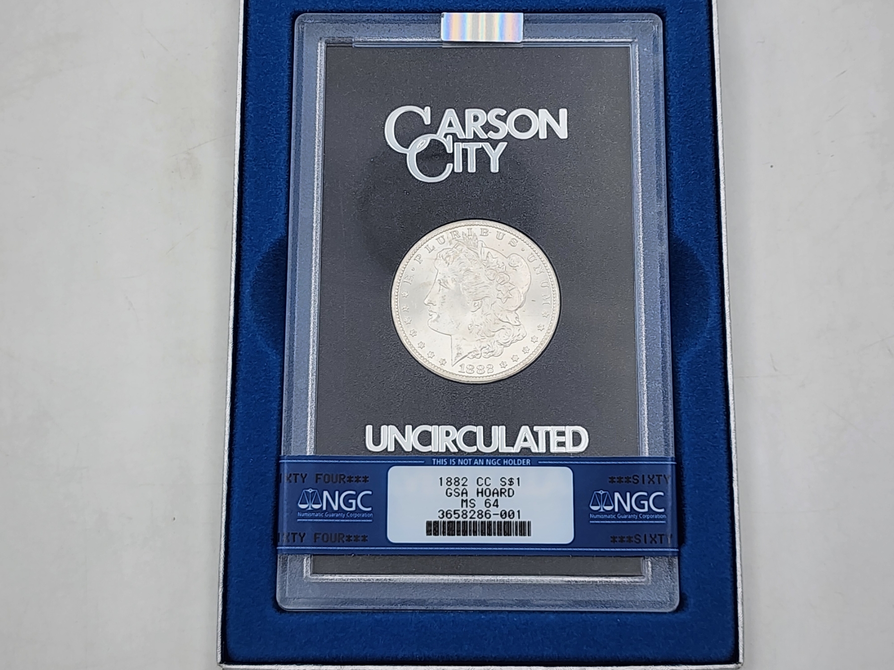 Uncirculated 1882 Carson City Morgan Silver Dollar - GSA Hoard Graded by NGC MS 64 in Display Box w/ Certificate of Authenticity (COA)