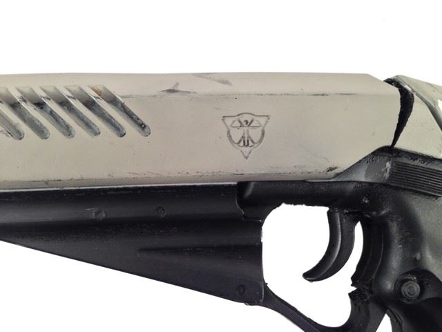 Selene (Kate Beckinsale) screen used Antigen Guard's silver and black Antigen Pistol made from rubber. Slide is slightly bent and torn. This is a prop only and cannot be made to fire in any way. Hand painted silver. (approx. measures 9" x 6" x 1.5")
