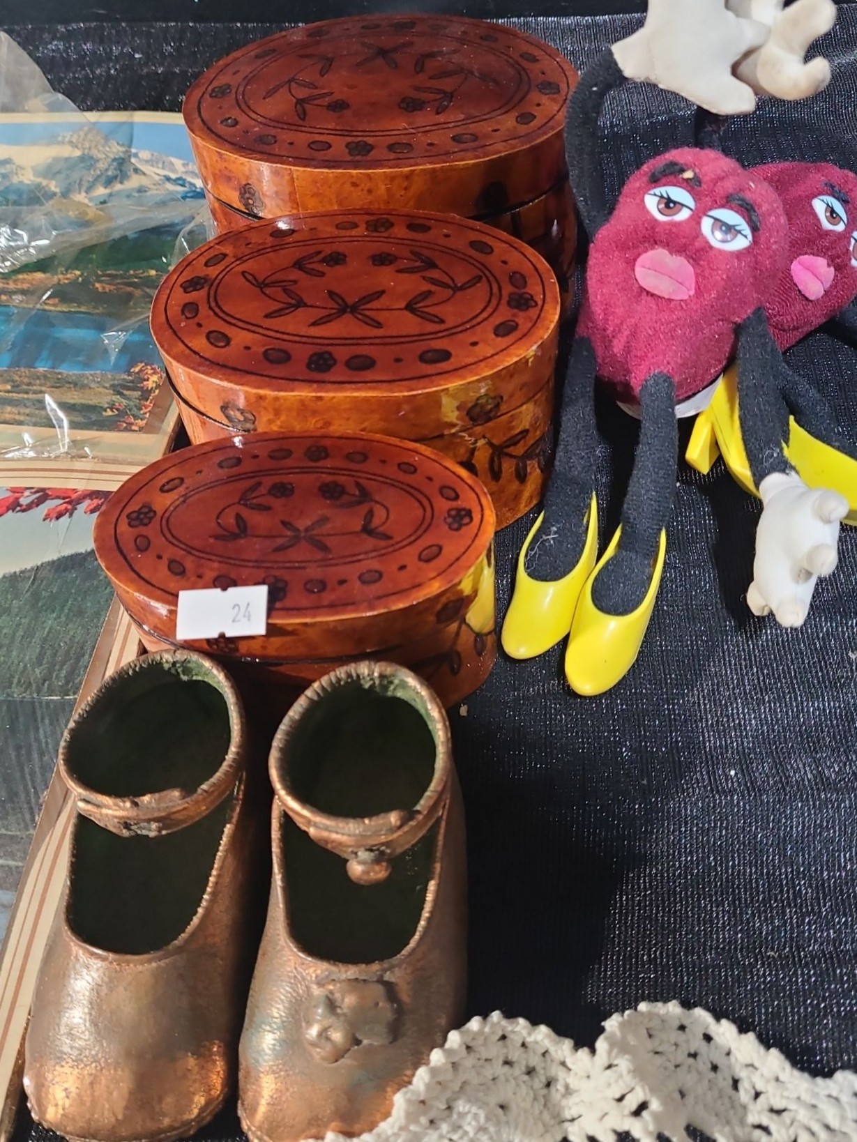 Unframed Pictures 9 X 7, Nesting Boxes- Largest: 5.5 W, 4 D, 3.5 T, Bronzed Baby Shoes and More!