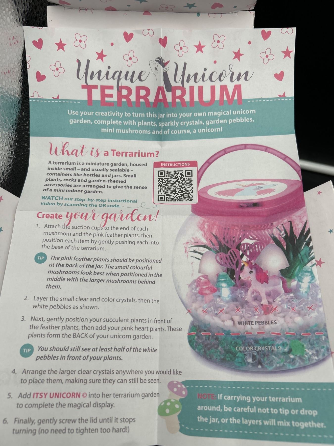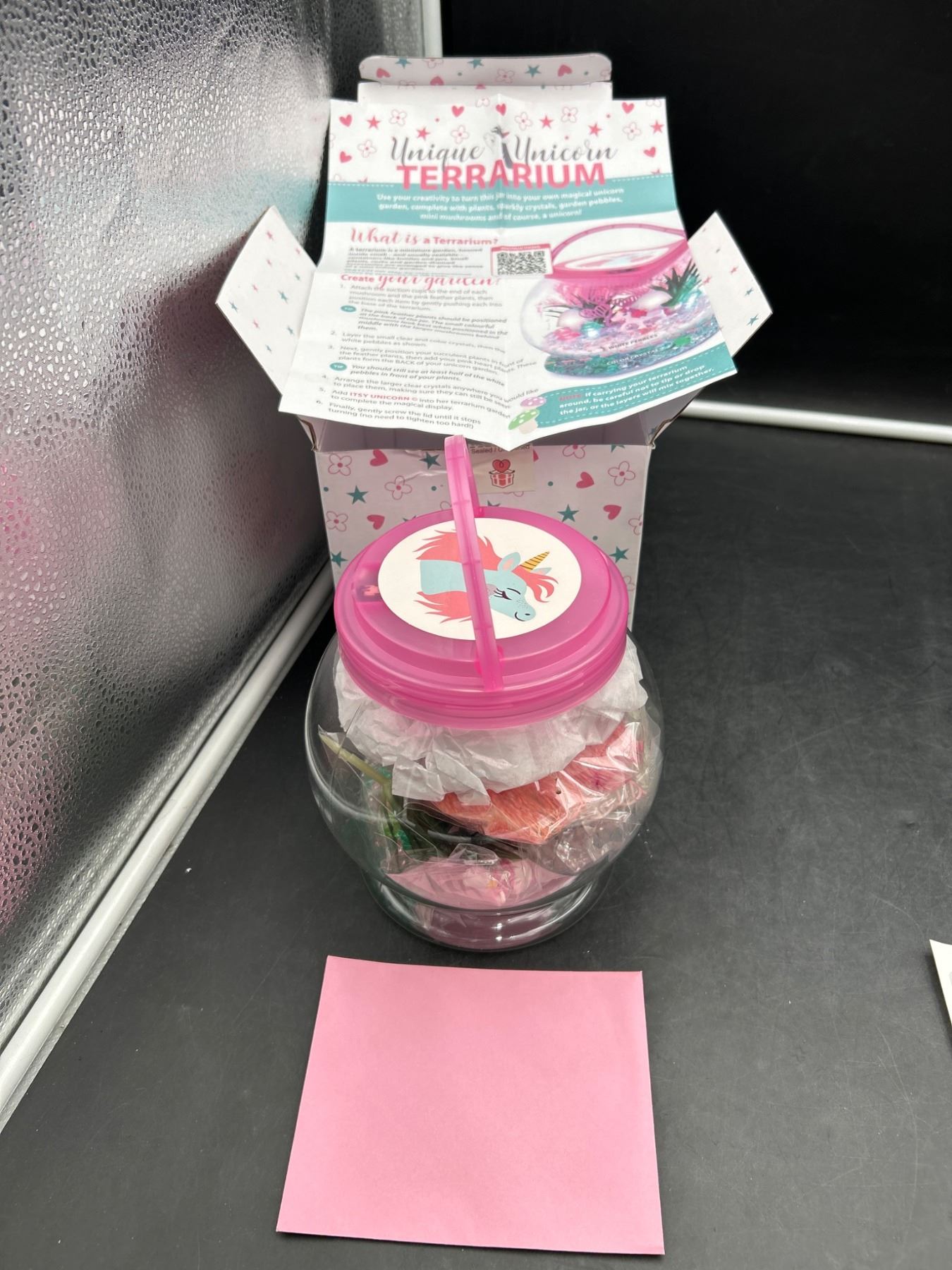 Unicorn Terrarium Kit with Pink Lid and DIY Components