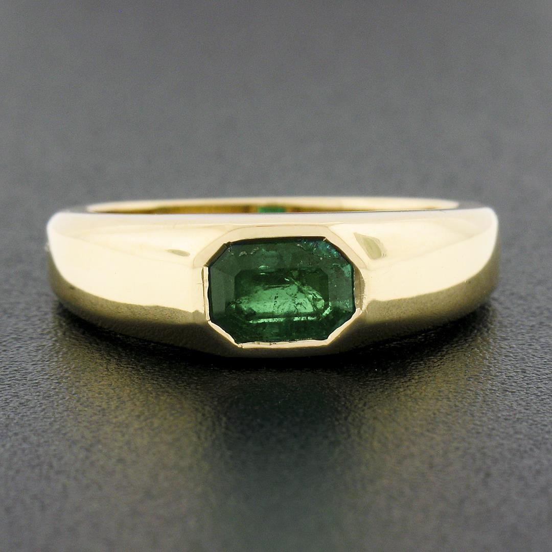 Unisex NEW 14K Yellow Gold 0.66 ctw Green Emerald Sideways Bezel Solitaire Ring