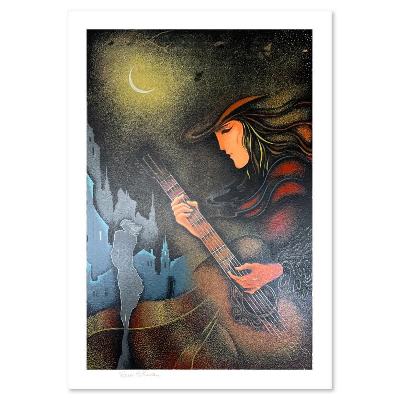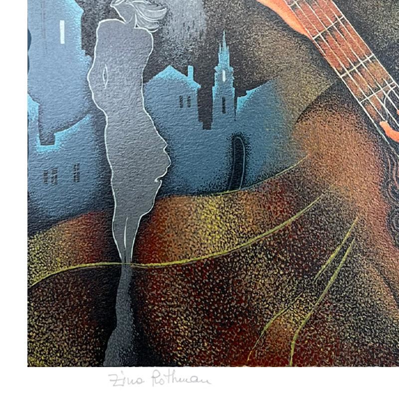 This is a limited edition serigraph on paper by Zina Roitman. The piece comes hand signed by the artist, numbered, and with a letter of authenticity. Measures approximately 18" x 12".