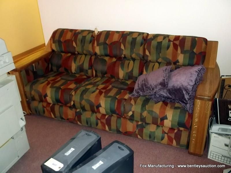 Upholstered & Wood Sofa with 2 Pillows