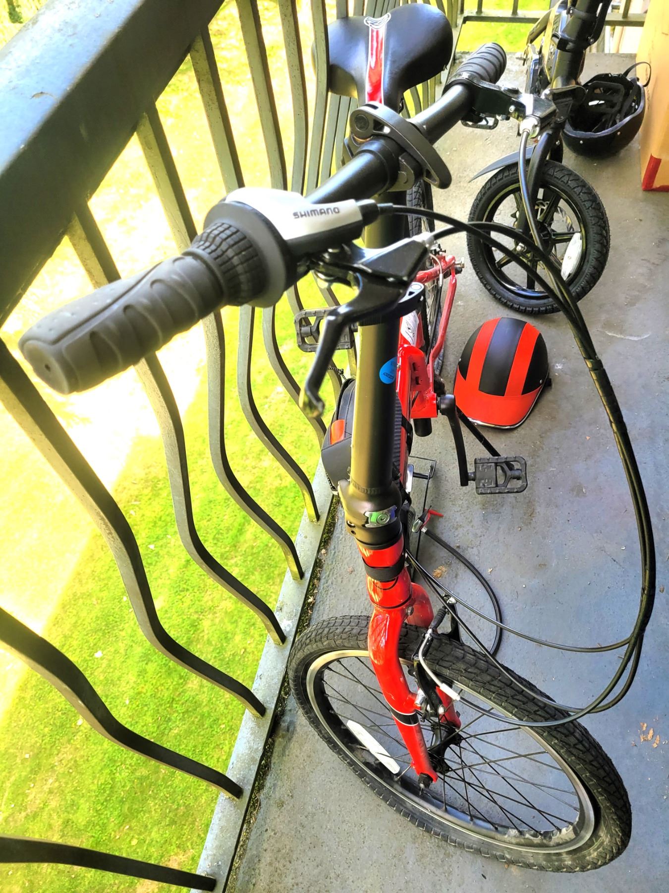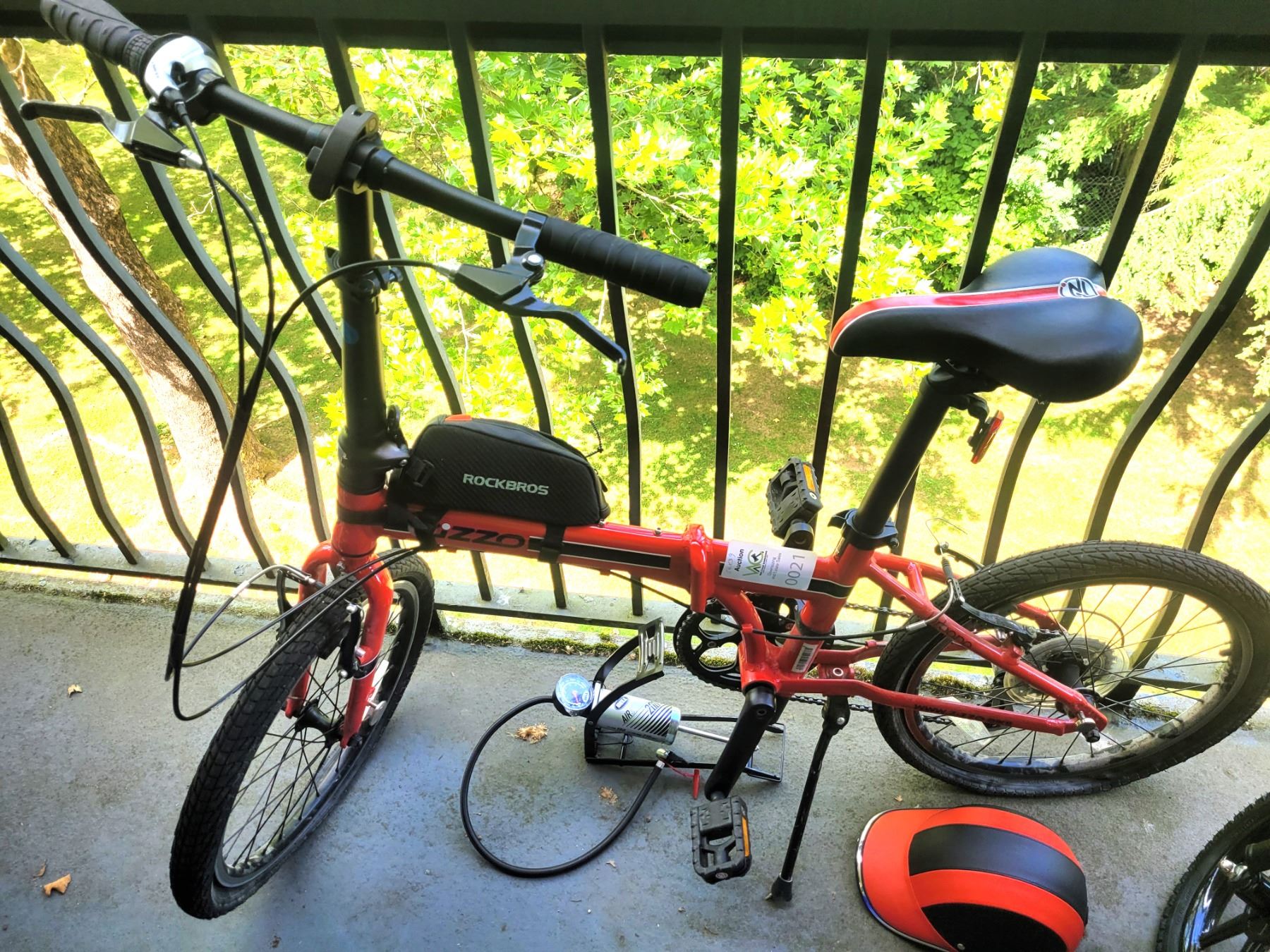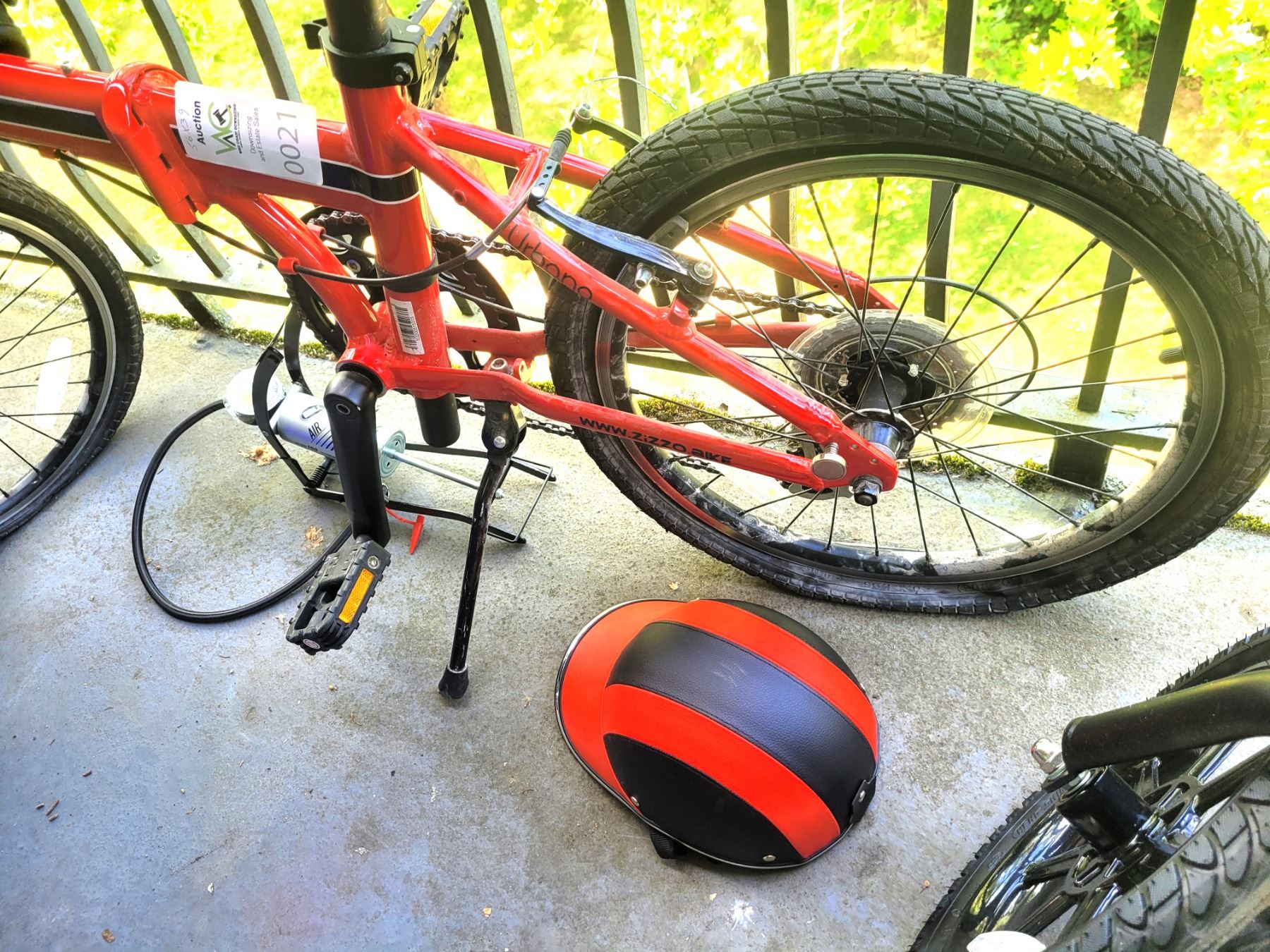 Urbana bike, folds up, includes helmet, tire pump. Pick up 9 am