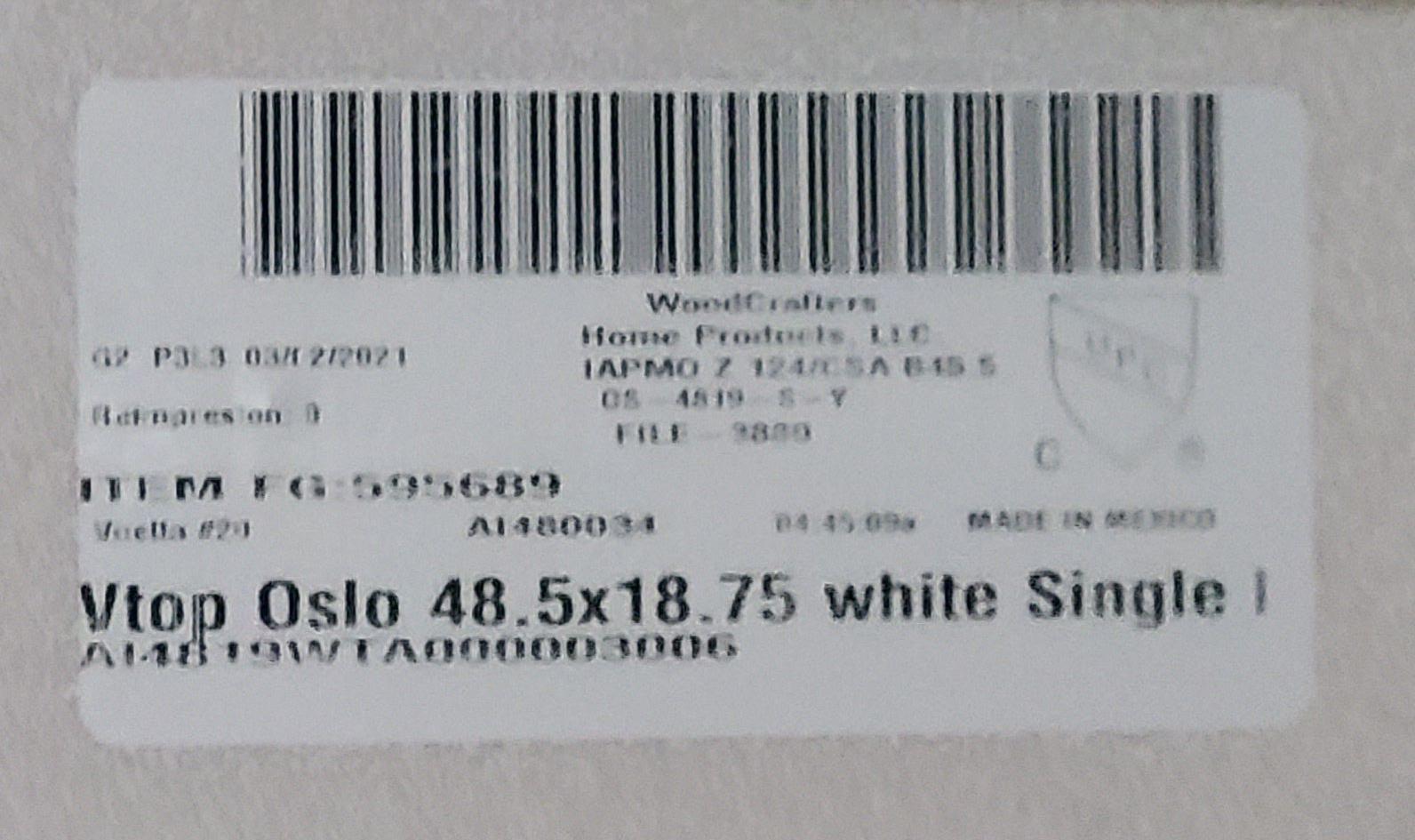 VANITY PVC (?) TOP WITH SINK - 18 3/4 X 48 1/4 INCH
