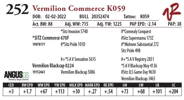 All bulls will be covered 50% by Vermilion Ranch if they are injured during their first breeding season. Breeding season is defined as the 60-day period following the first turnout of bulls.