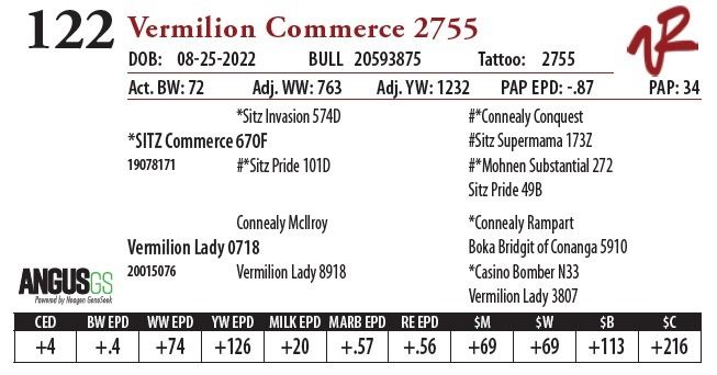 All bulls will be covered 50% by Vermilion Ranch if they are injured during their first breeding season. Breeding season is defined as the 60-day period following the first turnout of bulls.