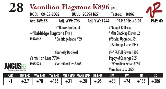 All bulls will be covered 50% by Vermilion Ranch if they are injured during their first breeding season. Breeding season is defined as the 60-day period following the first turnout of bulls.