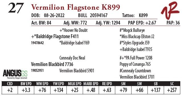 All bulls will be covered 50% by Vermilion Ranch if they are injured during their first breeding season. Breeding season is defined as the 60-day period following the first turnout of bulls.