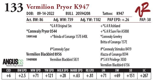 All bulls will be covered 50% by Vermilion Ranch if they are injured during their first breeding season. Breeding season is defined as the 60-day period following the first turnout of bulls.