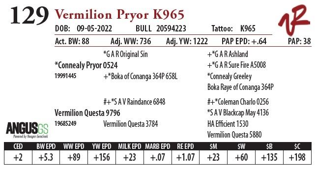 All bulls will be covered 50% by Vermilion Ranch if they are injured during their first breeding season. Breeding season is defined as the 60-day period following the first turnout of bulls.