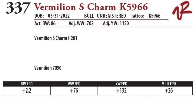 All bulls will be covered 50% by Vermilion Ranch if they are injured during their first breeding season. Breeding season is defined as the 60-day period following the first turnout of bulls.