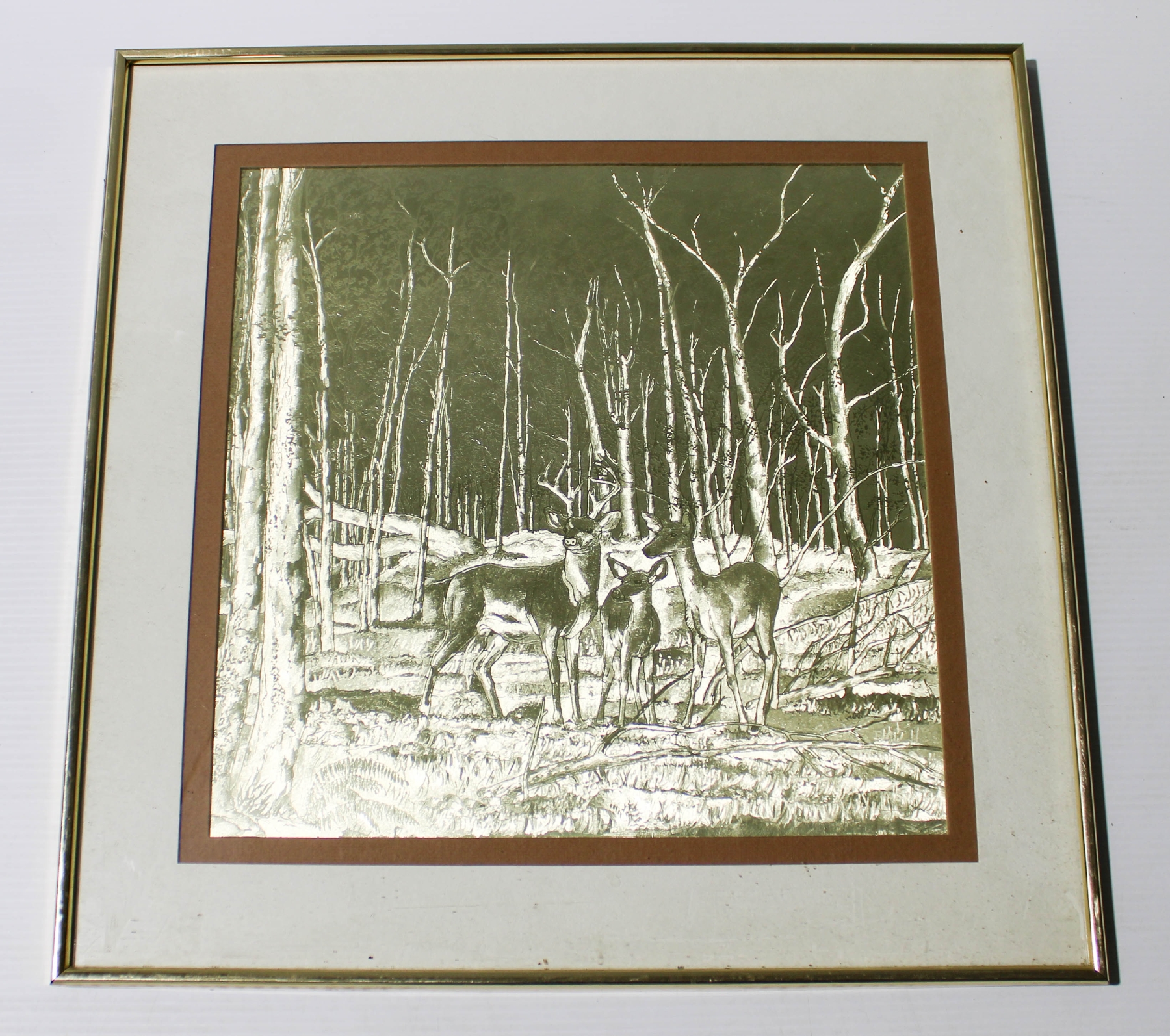 DEER FAMILY - FRAMED PICTURE SIZE: 18" X 18"