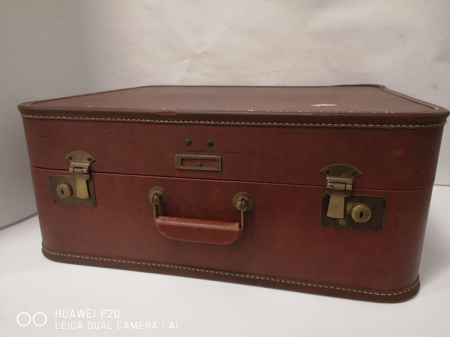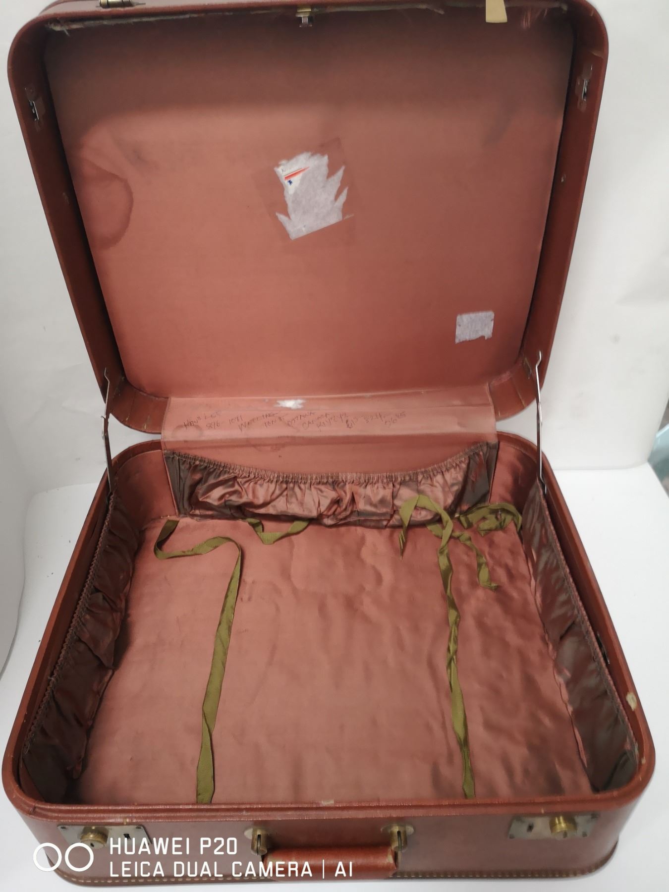 VINTAGE BROWN LEATHER SUIT CASE 21" X 9" X 19"