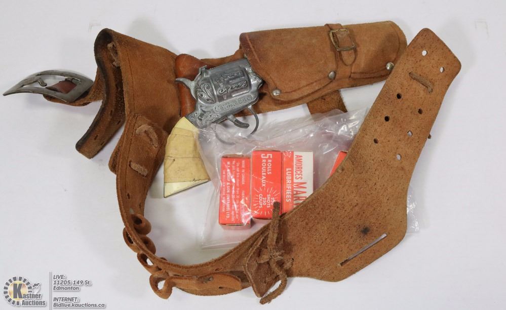 LEATHER HOLSTER AND 4 BOXES OF CAPS. BUFFALO BILL REVOLVER