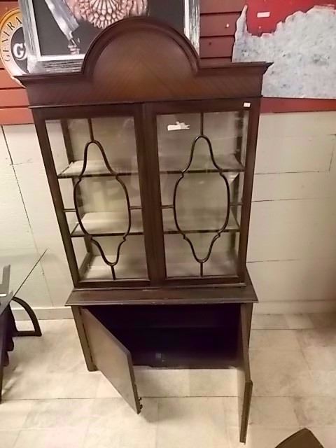 VINTAGE CHINA CABINET - 80" TALL - GLASS 2 CRACKS