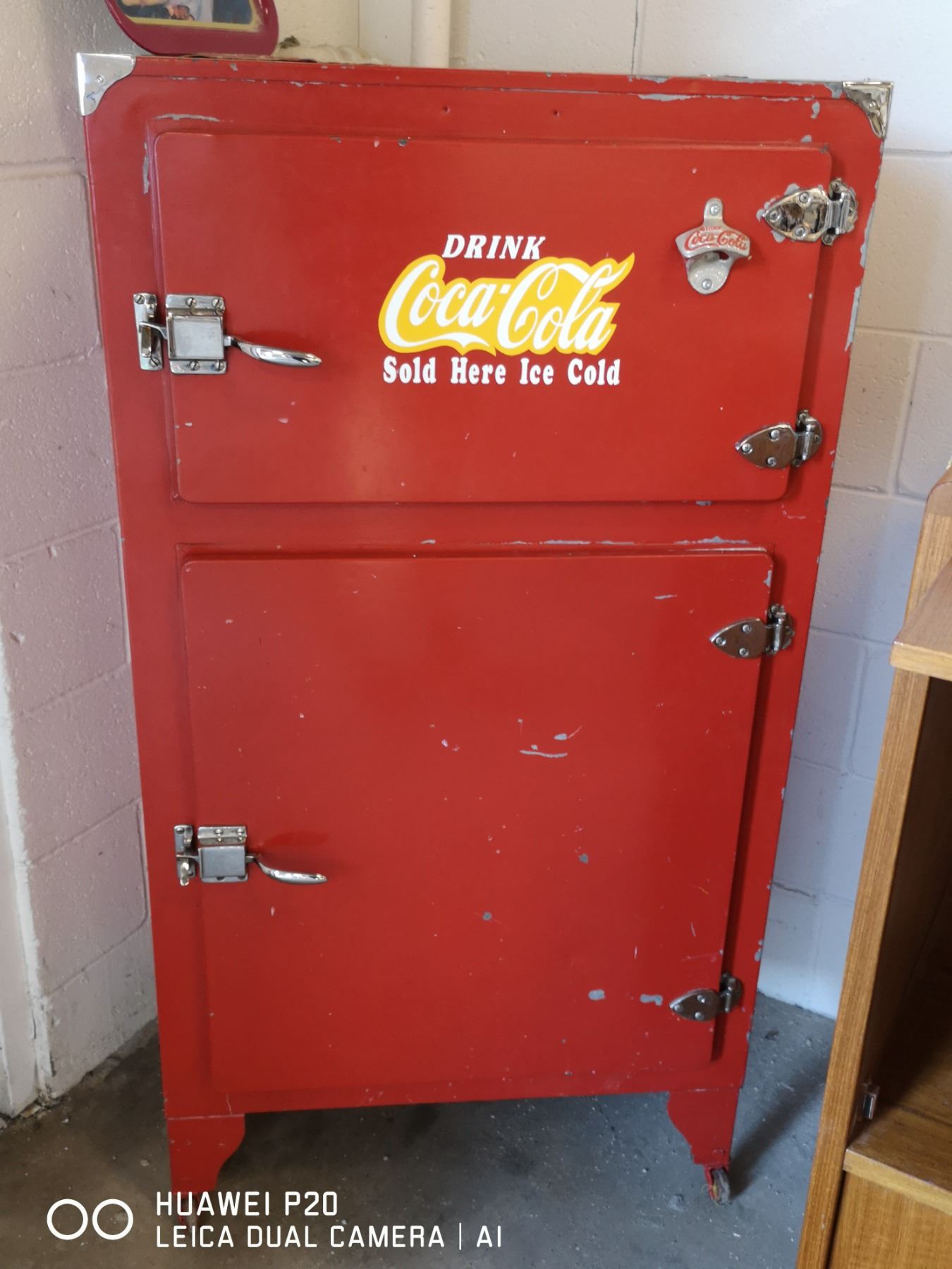 VINTAGE COCA-COLA ICE FRIDGE 27" X 18" X 52"