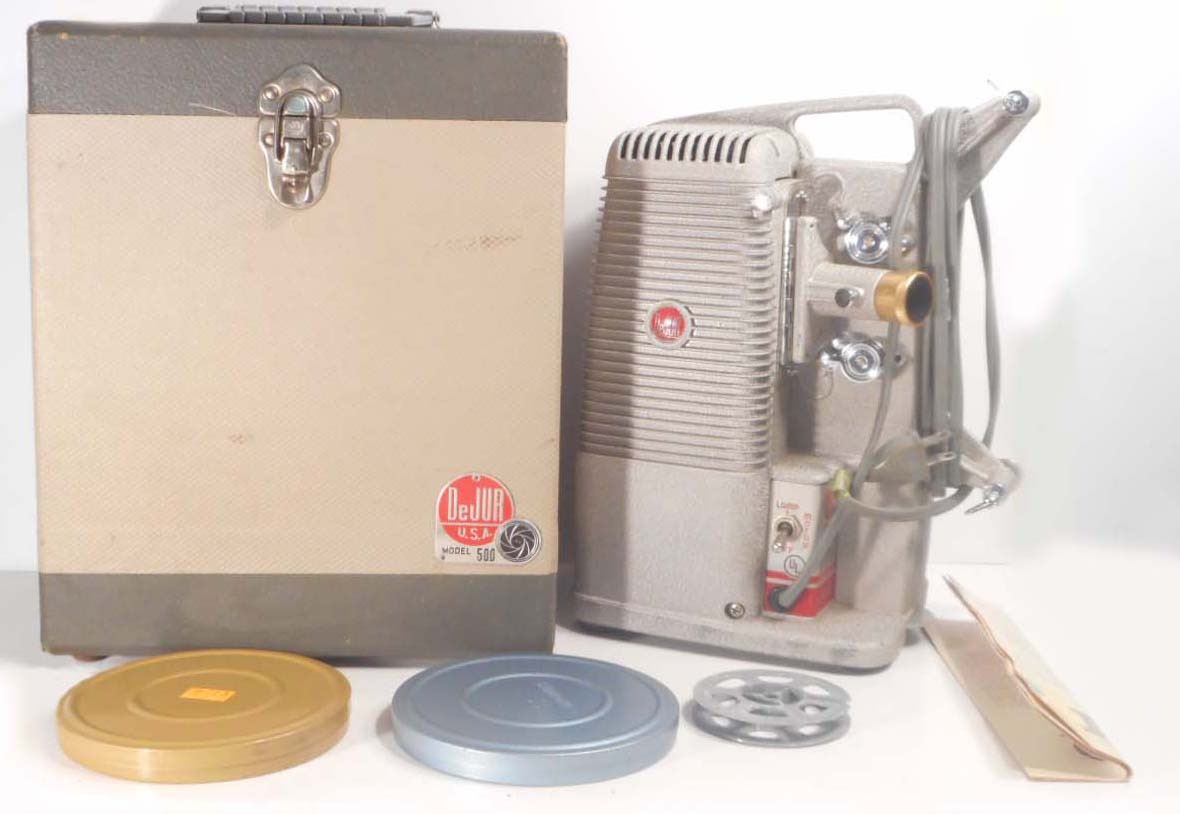 VINTAGE DEJUR USA MODEL 500 8 MM MOVIE PROJECTOR W/ ORIGINAL CASE