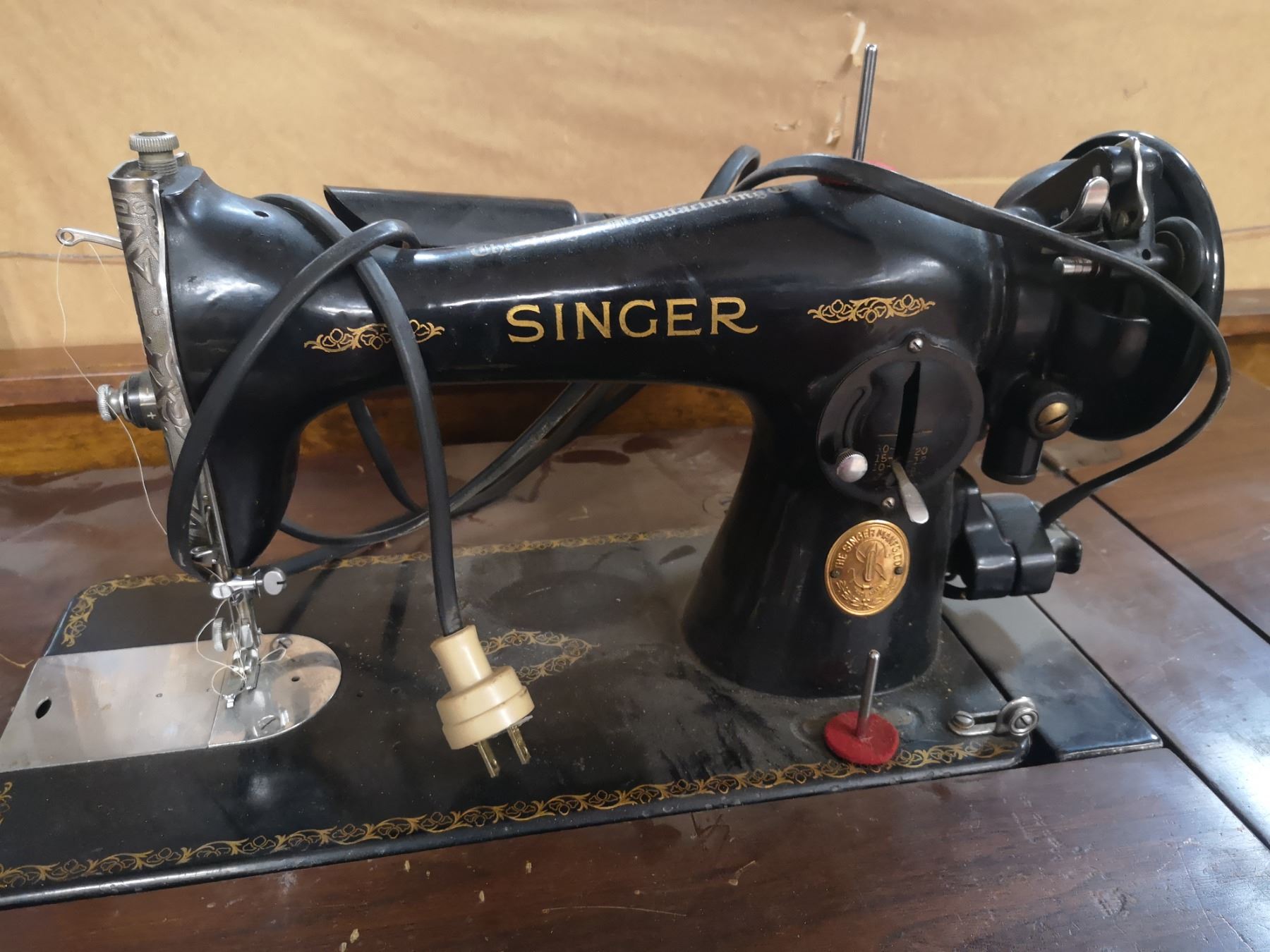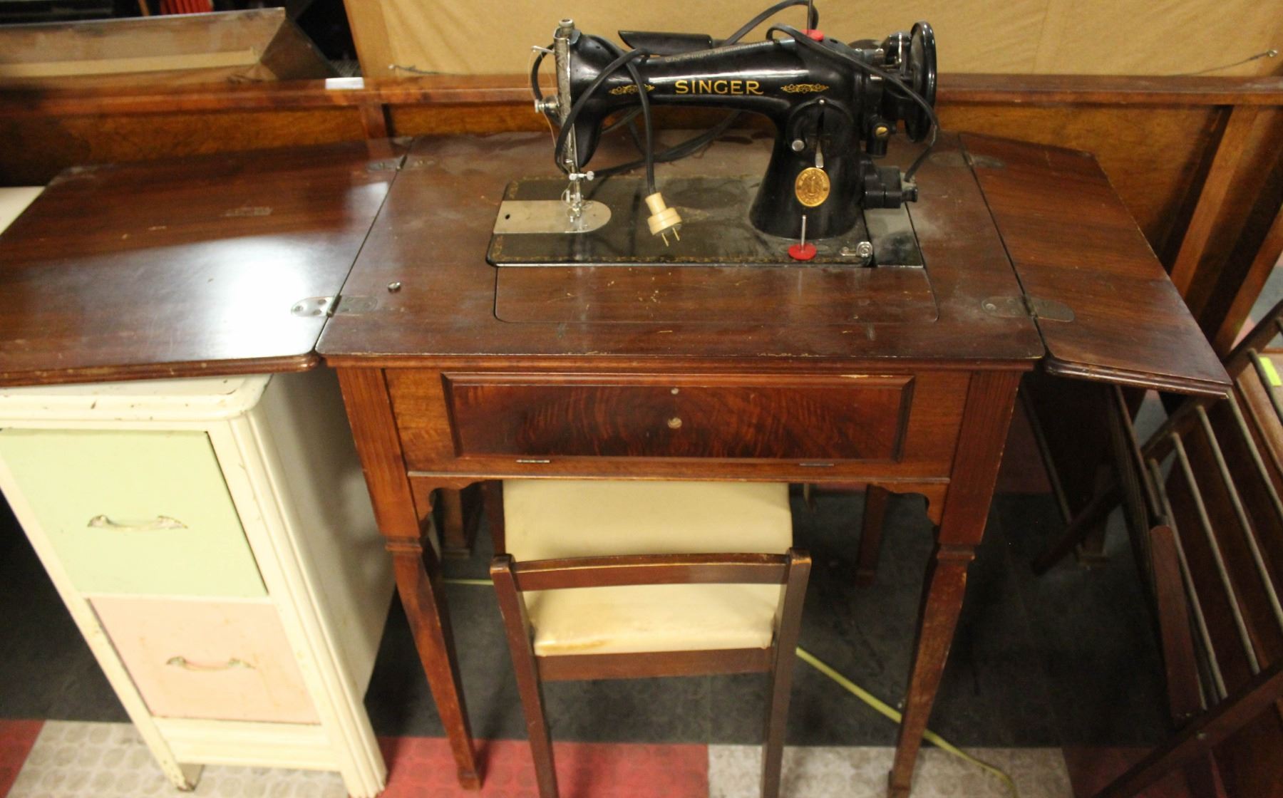 VINTAGE ELECTRIC SINGER SEWING MACHINE AND CHAIR