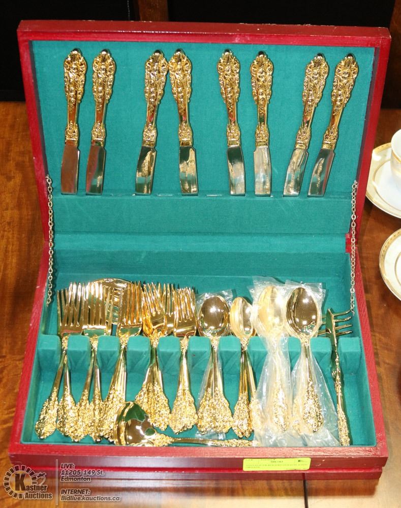 ROSE PATTERN FLATWARE IN CASE - SET OF 44 - HOUSEHOLD