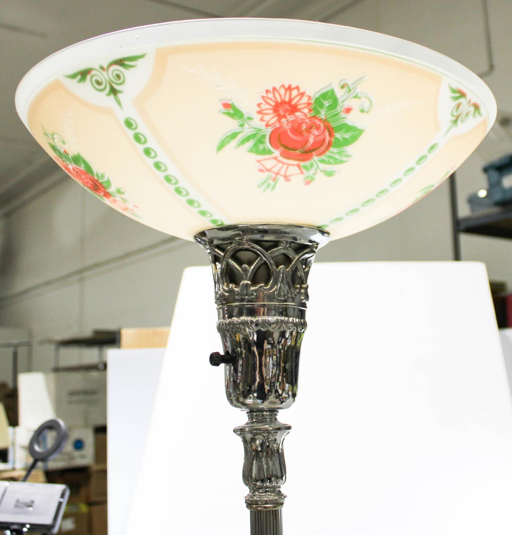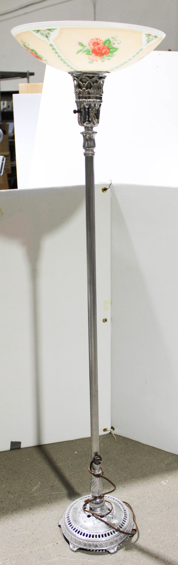 LAMP 66" H - FLOWERED GLASS SHADE APPROX. 17" DIAMETER - UNTESTED