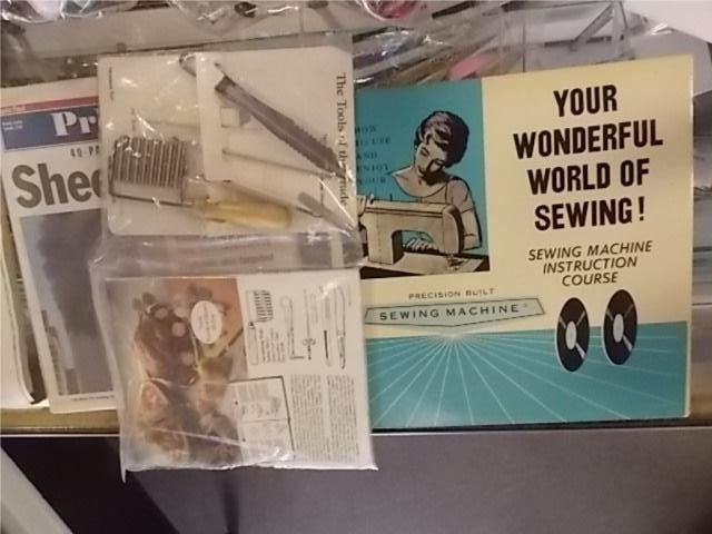 VINTAGE LEARN TO SEW RECORD, GOURMET GARNISH KIT & WALTKINS BOTTLE = 3 PC TTL