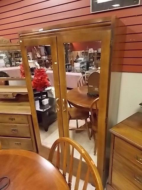 VINTAGE MAPLE WARDROBE WITH MIRRORED FRONT
