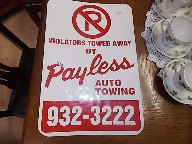 VINTAGE METAL CAR THEMED SIGN - PAYLESS