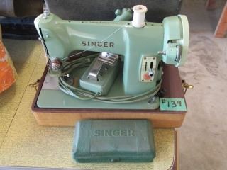 VINTAGE PORTABLE SINGER SEWING MACHINE C/W ATTACHMENTS