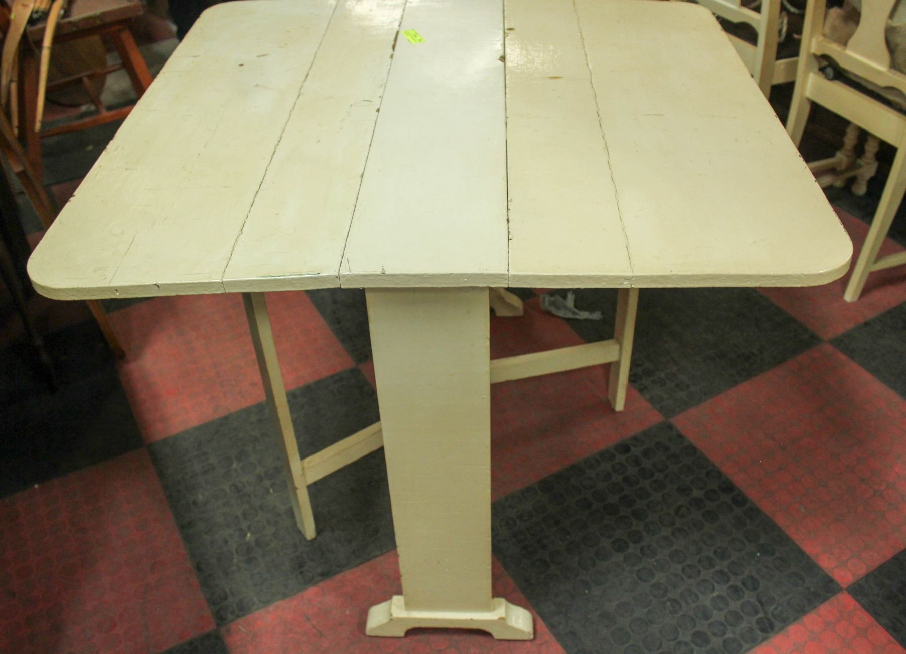 VINTAGE SOLID WOOD DROP LEAF TABLE WHITE