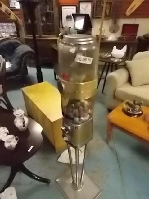 VINTAGE TALKING VENDING GUMBALL MACHINE - ON BEAVER BASE - NO KEYS - WORKING