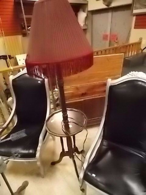 VINTAGE WOOD FLOOR LAMP WITH SIDE TABLE - WITH SHADE