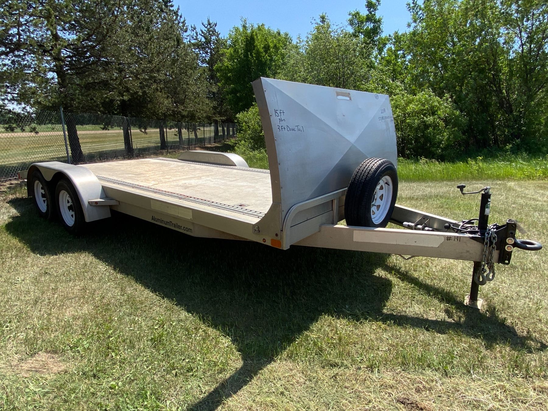 VO 2018 18ft. Alum. Trailer 3500lb Axles,5 hole rims, Pindle Hitch, spare tire, Front windshield s/n 5JX1Z1822JC212782 Has had Limited Use