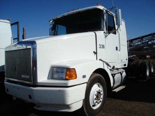 1995 VOLVO WG64T T/A TRUCK TRACTOR, s/n 4V1WDBPF9SN691988: CUMMINS M11 375HP DIESEL ENGINE, FULLER RTX13710CI TRANS, SLEEPER, 34,000lb. REAR, & 12,000lb. FRONT AXLES, 236in. WHEELBASE, AIR RIDE SUSPENSION, 11R24.5 TIRES, BUDD WHEELS