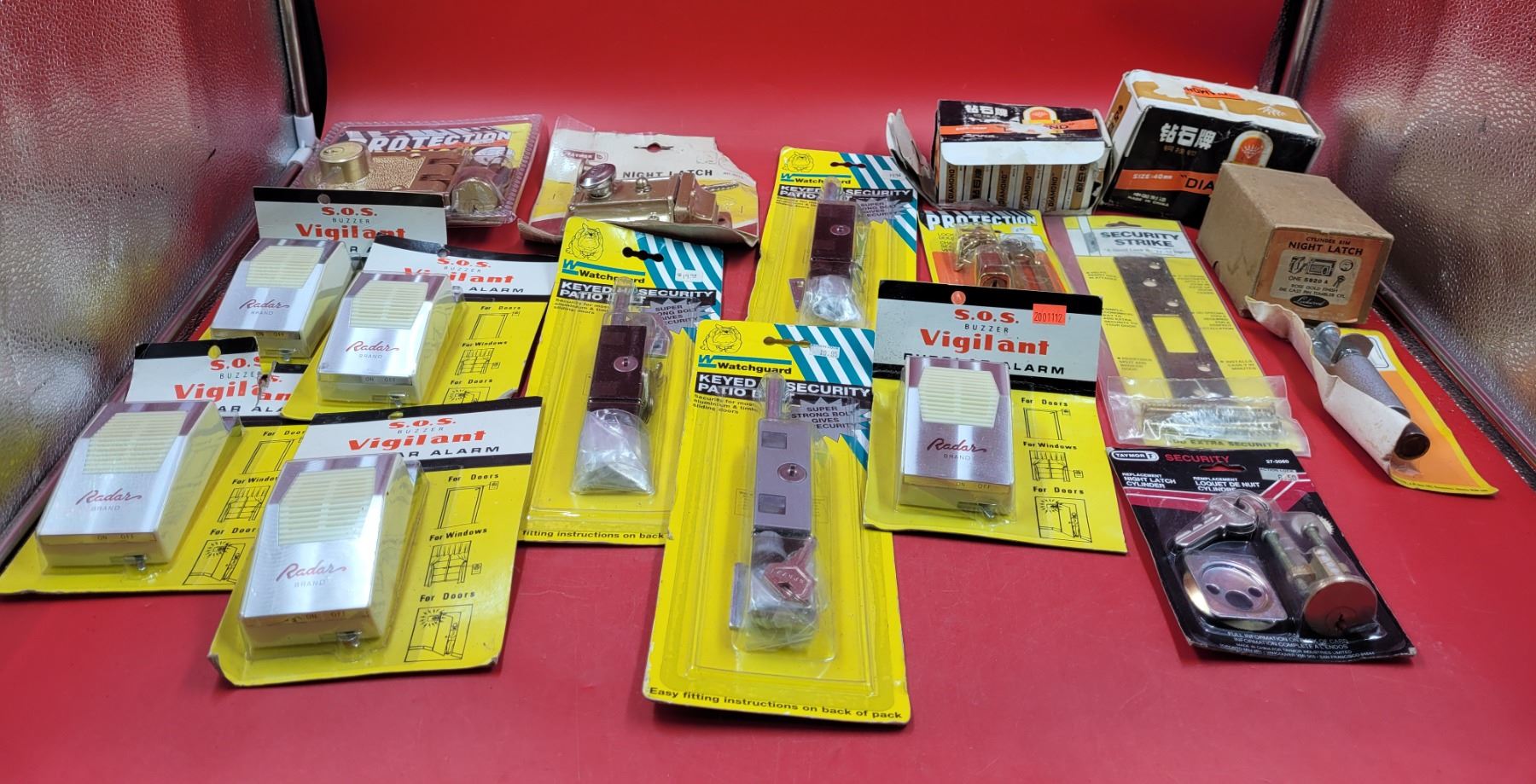VTG Home Improvement Lot w/ SOS Buzzer Burglar Alarm, Patio Bolts, Latches, & More