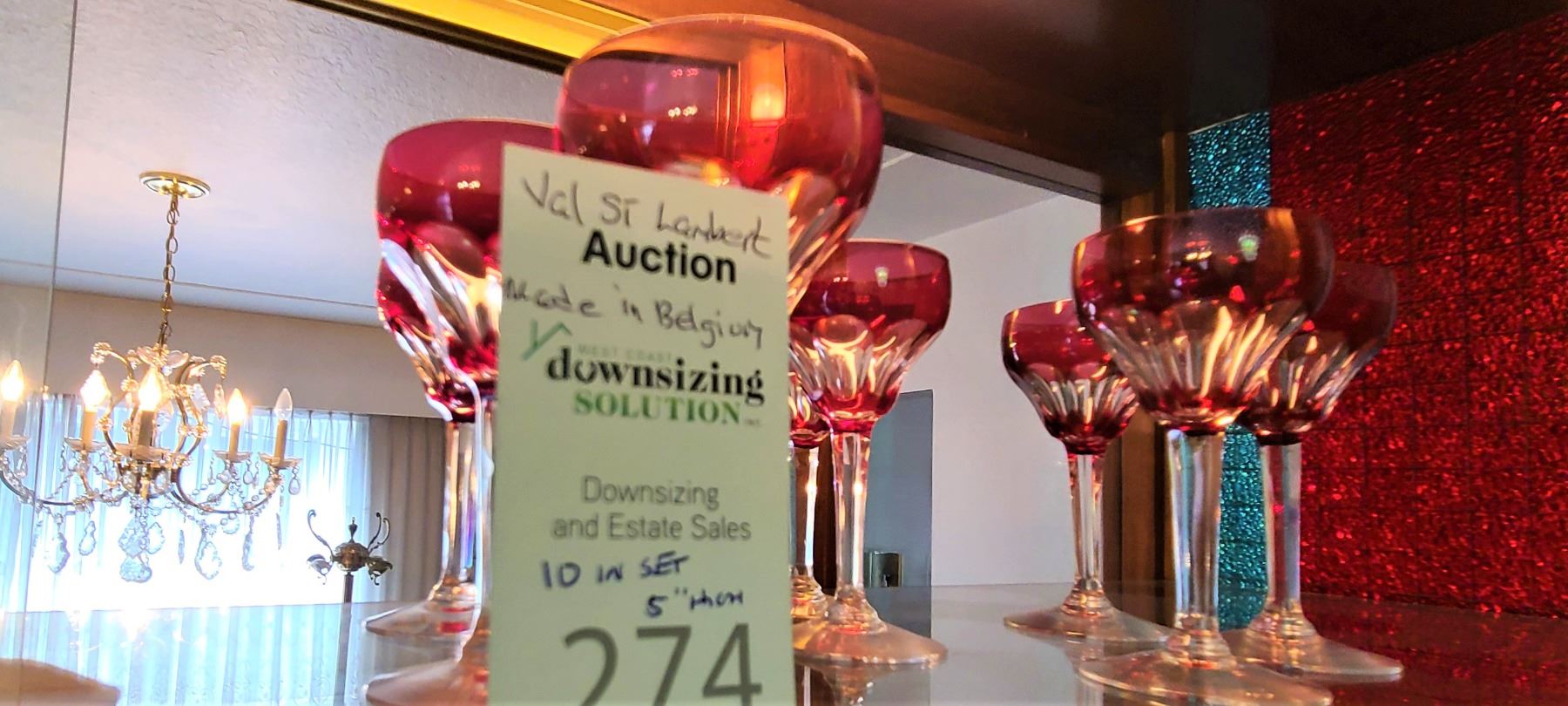 Set of 10 ruby crystal goblets, 5". Val St Lambert, made in Belgium. Bring packing material. Pick up 9-10