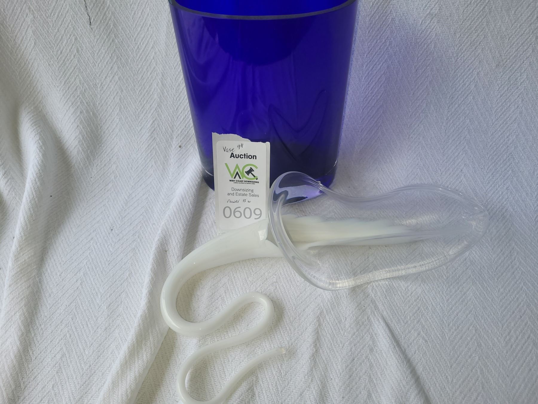 9" vase and art glass flower 13" Pickup at 9 am
