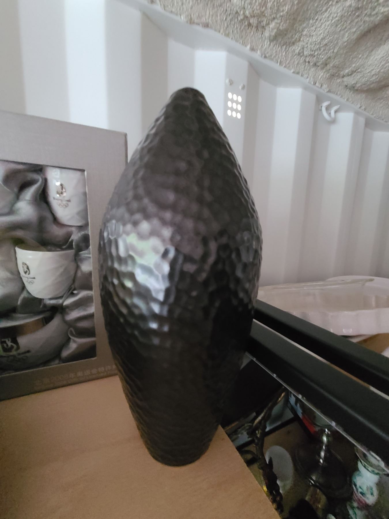 The Bowl of A Hundred Butterflies, Black Ceramic Vase 14 inches, 2008 Beijing Olympic tea set and serving bowls. Bring packing material and pick up at 9am