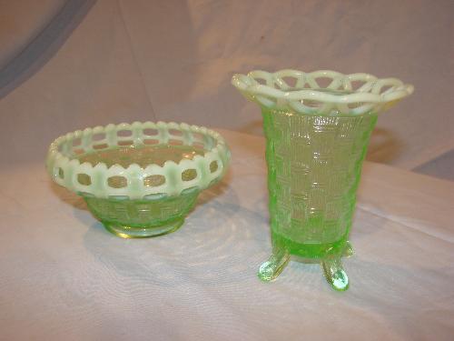 Basket weave pattern vaseline glass-2 pcs.