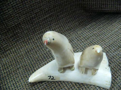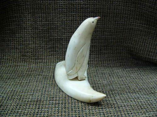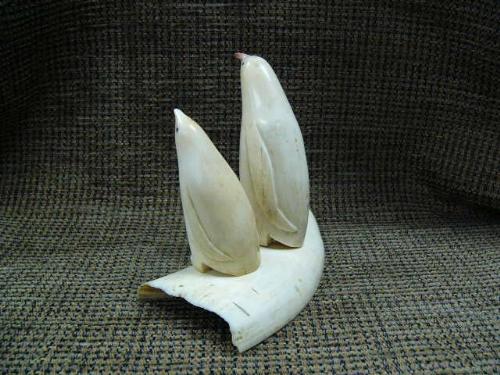 Very old carving of 2 ivory whale's tooth penguins- one beak has been repaired (33)