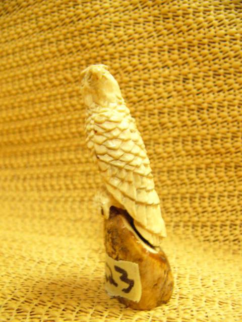 Very small, detailed ivory eagle on ivory base, signature unknown (159)
