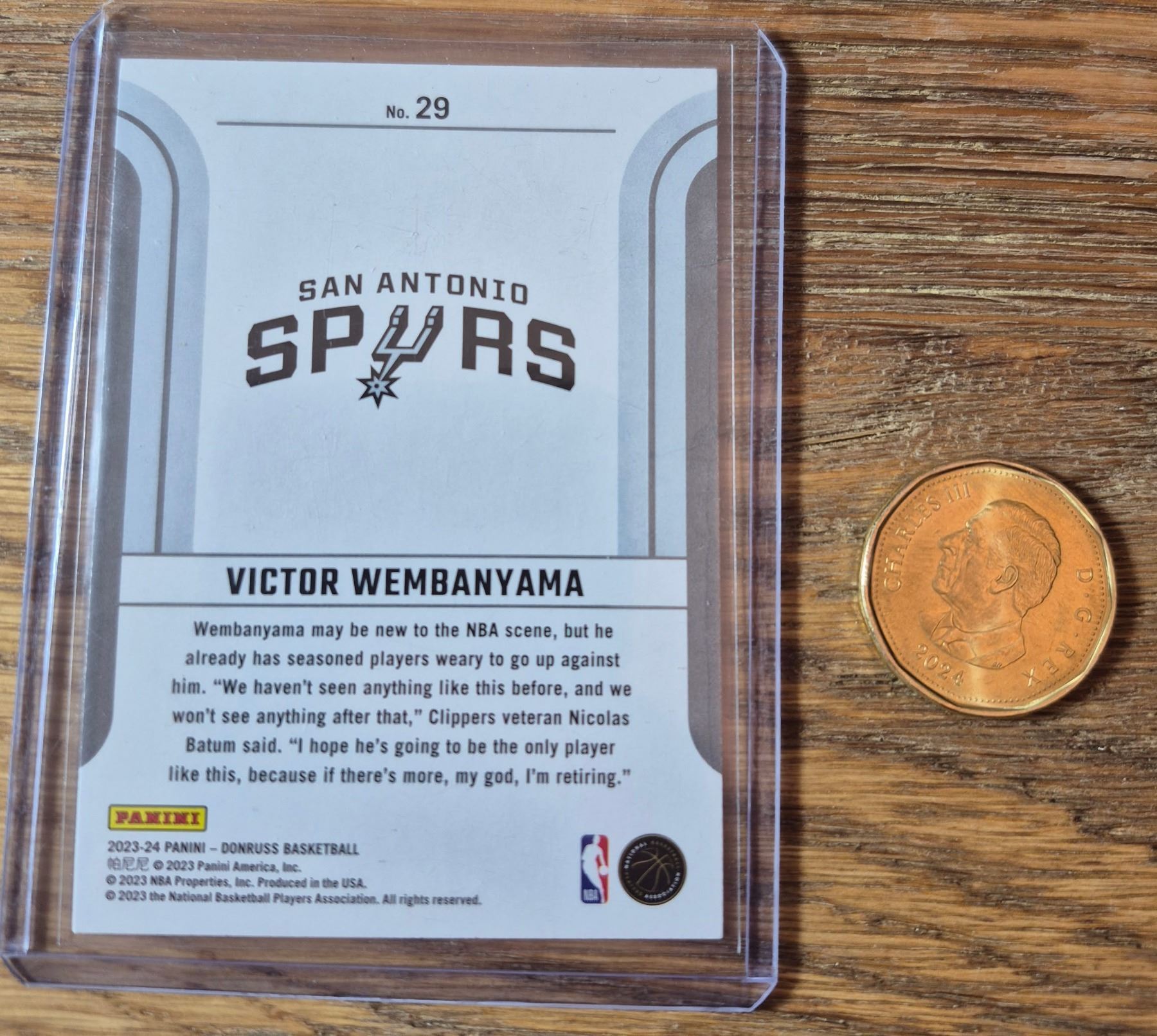 Highly sought-after rookie insert card featuring Victor Wembanyama of the San Antonio Spurs from 2023-24 Donruss Basketball.